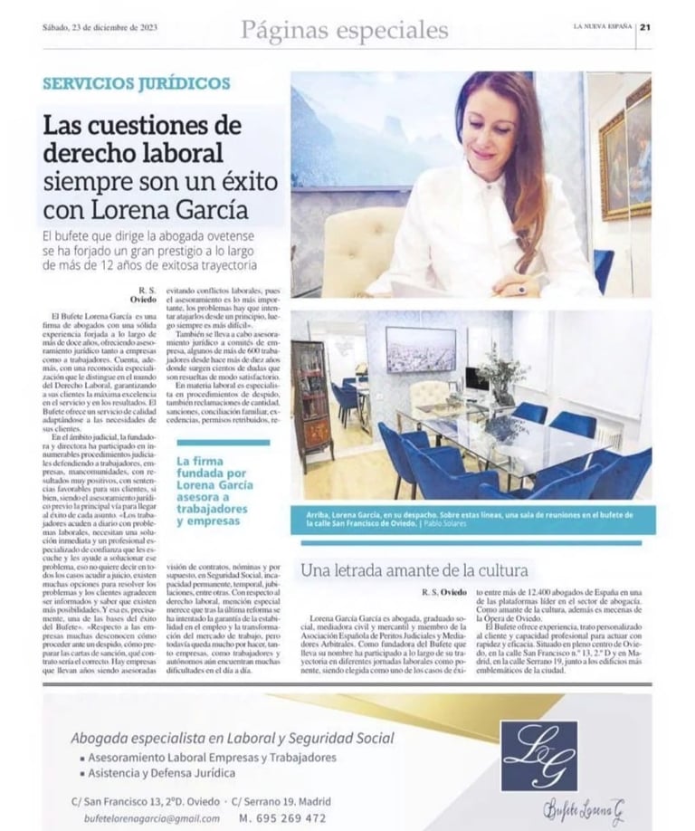 -Elegida como uno de los CASOS DE ÉXITO entre 13.576 abogados de toda España en la plataforma LÍDER en el sector de la Abogacía.